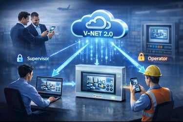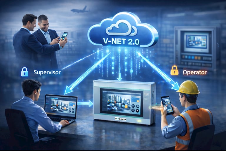 Mediante la plataforma en la nube de WECON, VNet 2.0 permite establecer redes seguras entre dispositivos de campo y sistemas de supervisión, simplificando la implementación de soluciones de automatización conectada e Industria 4.0.